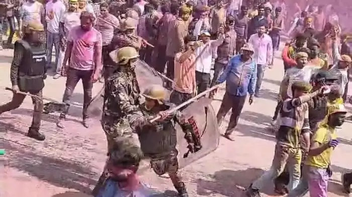 उत्तर प्रदेश के शाहजहांपुर में शुक्रवार को बड़े लाट साहब के जुलूस के दौरान दो जगहों पर पुलिस को लाठीचार्ज करना पड़ा। खिरनीबाग और घंटाघर के पास उपद्रवियों ने सुरक्षाकर्मियों पर पथराव और कांच की बोतलों से हमला किया। इसके बाद पुलिस ने उपद्रवियों पर लाठीचार्ज किया और कई लोगों को हिरासत में लिया। जुलूस के दौरान हिंसा भड़कने से तनावपूर्ण माहौल बन गया था, लेकिन बाद में पुलिस ने स्थिति को नियंत्रण में कर लिया।