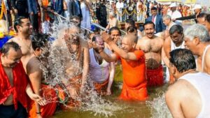 बुधवार को योगी आदित्यनाथ प्रयागराज पहुंचे। उन्होंने अपने सभी मंत्रियों के साथ संगम में डुबकी लगाई। इस दौरान किसी मंत्री ने जल योगी आदित्यनाथ पर उछाल दिया, जिसके जवाब में योगी ने भी जल मंत्रियों पर फेंका। इसके बाद योगी और मंत्री सबी जलक्रीड़ा करने लगे। इसका वीडियो सोशल मीडिया पर जमकर वायरल हो रहा है।