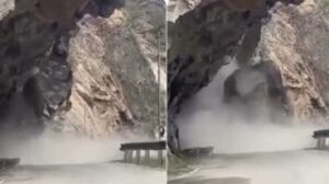 आज दोपहर के समय चमोली जनपद में नीती मलारी नेशनल हाईवे हाईवे पर पहाड़ टूटकर गिरने का एक वीडियो वायरल होने लगा। इस वीडियो में साफ देखा जा सकता है कि किस तरह से पहले कुछ पत्थर गिरे और फिर कुछ ही सेकेंड में पहाड़ का बड़ा सा हिस्सा भरभराकर गिर गया। इसके बाद हाईवे पर चारों तरफ धूल का गुबार दिखाई दिया।