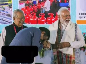 पीएम की हंसी रुकी भी नहीं थी कि गडकरी ने उन्हें अंगवस्त्र देने के लिए हाथ बढ़ाया। पीएम मोदी खिलखिलाते हुए ही झुके और गडकरी ने उनके गले में अंगवस्त्र डाल दिया। मोदी उसी मुद्रा में अपनी गर्दन बाएं तरफ घुमाई। तब तक गडकरी ने उनका दांया हाथ पकड़ा और झुककर अपने माथे से लगा लिया। प्रधानमंत्री तब तक हंसते रहे। इतनी लंबी और इतनी जोरदार हंसी के पीछे कुछ बात तो जरूर हुई होगी। हंसने से पहले पीएम को गडकरी से कुछ कहते भी देखा गया। पता नहीं क्या बात हुई कि ऐसी हंसी छूट पड़ी। खैर जो भी बातचीत हुई हो, लेकिन यह दृश्य बहुत कुछ कहता है। पीएम मोदी और मंत्री गडकरी की यह तस्वीर अपने आप में एक कहानी का शीर्षक है।