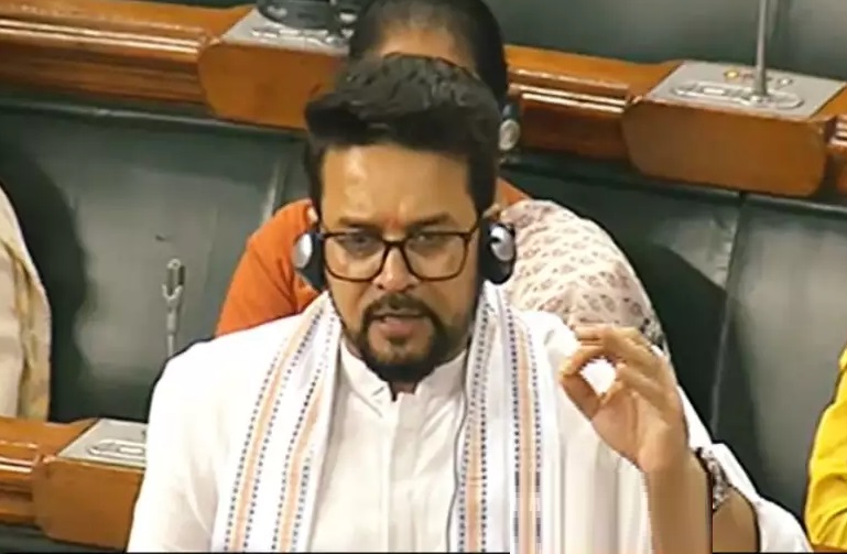 सूचना और प्रसारण मंत्री अनुराग ठाकुर ने सोमवार को लोकसभा में भारत की सौम्य संपदा (सॉफ्ट पॉवर) का जिक्र करते हुए जिमी, जिमी, जिमी..और आई एम अ डिस्को डांसर जैसे हिंदी फिल्मों के गीतों की एक-एक पंक्ति गुनगुनाई। लोकसभा में मणिपुर के मुद्दे पर विपक्षी सदस्यों की नारेबाजी के बीच चलचित्र संशोधन विधेयक, 2023 पर संक्षिप्त चर्चा का जवाब देते हुए केंद्रीय मंत्री अनुराग ठाकुर ने कहा कि भारत की सौम्य संपदा में देश की धरोहर, विरासत, विविधता का बहुत बड़ा योगदान है।