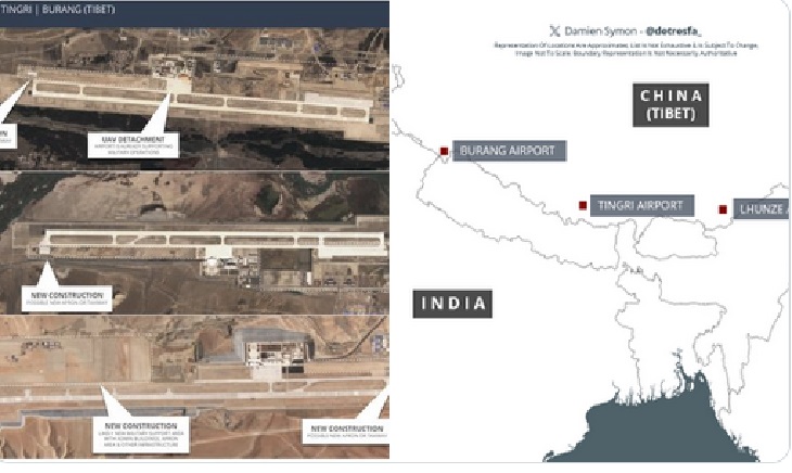 चीन पिछले कई वर्षों से भारत की सीमा के पास हवाई अड्डों का निर्माण कर रहा है। दो साल पहले ऐसी रिपोर्ट आई थी कि चीन की पीपुल्स लिबरेशन आर्मी (PLA) के वेस्टर्न थिएटर कमांड के लिए 30 एयरपोर्ट बनाए जा रहे हैं। यही कमांड भारत के साथ जुड़ी सीमा पर निगरानी रखता है और ये एयरपोर्ट भी भारत से सटे इलाकों में बनाए जाने का प्लान है। तिब्बत में बनने वाले तीन एयरपोर्ट लुंझे, टिंगड़ी और बुरांग काउंटी में हैं जो भारतीय सीमा के करीब हैं।