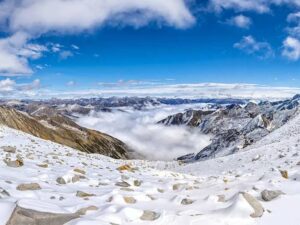 जून की एक सुबह जब वैज्ञानिकों का एक समूह दक्षिण-पश्चिम चीन में डांगु ग्लेशियर की चोटी के पास बर्फ से गुजर रहा था तो हवा काफी धीमी थी। समुद्र तल से लगभग 4500 मीटर की ऊंचाई पर मौजूद ग्लेशियर में बहते पानी की आवाज को छोड़कर सब कुछ शांत था। उनके पैरों के ठीक नीचे बहता पानी बर्फ के पिघलने की लगातार याद दिला रहा था। जैसे-जैसे वैज्ञानिकों की टीम ऊपर की ओर बढ़ रही थी उनके ऑक्सीजन के सिलेंडर खाली हो रहे थे। उनके साथ मौजूद कुली सफेद कपड़ों के मोटे रोल लेकर साथ-साथ चल रहे थे। वैज्ञानिकों ने उन चादरों को पहाड़ के 4300 वर्ग फुट से अधिक क्षेत्रों में फैलाने की योजना बनाई है। इसका मकसद ग्लेशियर को तेजी से पिघलने से बचाना है।