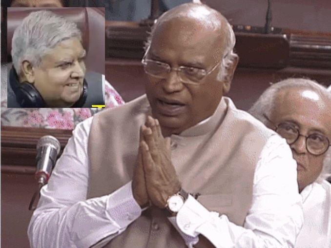 संसद के मॉनसून सत्र के आखिरी दिन आज राज्यसभा में कांग्रेस अध्यक्ष मल्लिकार्जुन खरगे ने हाथ जोड़ लिए। दरअसल, राज्यसभा के सभापति जगदीप धनखड़ को आज एक साल हुए। सदन के नेता ने बधाई तो खरगे ने कहा कि कहते तो हम सभी मिलकर दो शब्द कह सकते थे बगैर बात किए ये वन-वे करते हैं। इसके बाद ही खरगे ने हाथ जोड़ते हुए कहा, ‘आपसे विनती है जल्दी माइक बंद मत करो साहब’। यह देख सभापति भी हंस पड़े और उन्होंने भी हाथ जोड़ लिए।