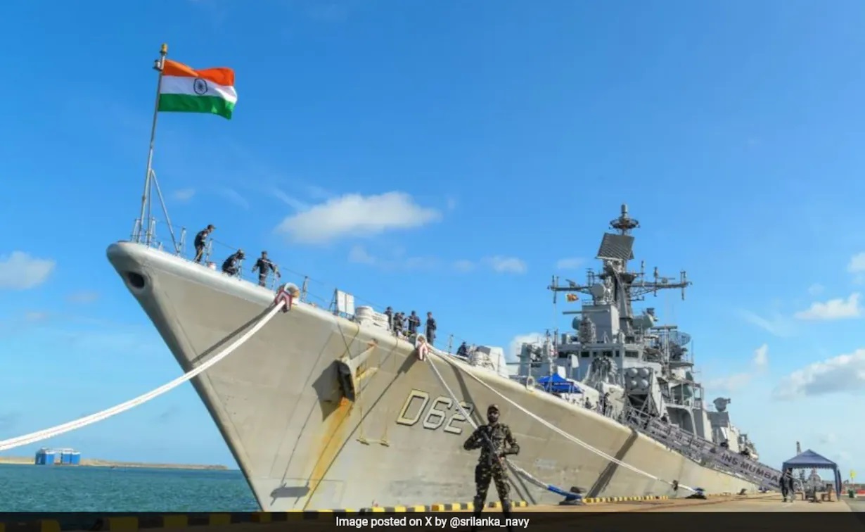 भारतीय नौसेना का पोत आईएनएस मुंबई श्रीलंका की तीन दिवसीय यात्रा पर सोमवार को कोलंबो बंदरगाह पहुंचा। संयोग से चीनी नौसेना के तीन युद्धपोत भी आज कोलंबो बंदरगाह पहुंचे। श्रीलंका नौसेना ने एक प्रेस विज्ञप्ति में कहा कि भारतीय नौसेना का जहाज ‘मुंबई’ श्रीलंका की तीन दिवसीय यात्रा पर है। भारतीय उच्चायोग ने रविवार को एक प्रेस विज्ञप्ति में कहा था कि आईएनएस मुंबई 163 मीटर लंबा विध्वंसक पोत है जिस पर 410 सदस्यों का चालक दल सवार है। उच्चायोग ने कहा कि यह जहाज श्रीलंका के किसी बंदरगाह पर पहली बार आया है।
