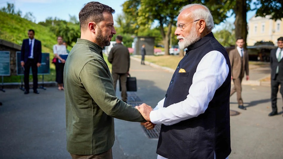 यूक्रेन के राष्ट्रपति के आधिकारिक आवास मैरिंस्की पैलेस में पीएम मोदी और राष्ट्रपति जेलेंस्की की मुलाकात हुई. जेलेंस्की से मुलाकात के बाद पीएम मोदी ने कहा, ‘युद्ध की विभीषिका से दुख होता है. युद्ध बच्चों के लिए विनाशकारी है.’ प्रधानमंत्री ने कहा कि भारत और यूक्रेन के लिए आज का दिन ऐतिहासिक है.