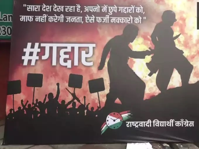 राष्ट्रवादी विद्यार्थी कांग्रेस ने लगाए ‘गद्दार के पोस्टर’