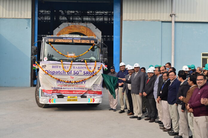 बीएचईएल हरिद्वार के रक्षा एवं एयरोस्पेस विभाग ने एक महत्वपूर्ण उपलब्धि हासिल करते हुए अपनी 50वीं सुपर रैपिड गन माउंट (एसआरजीएम) नेवल गन का निर्माण सफलतापूर्वक पूर्ण कर लिया है। बीएचईएल हरिद्वार के कार्यपालक निदेशक रंजन कुमार ने इस नेवल गन को हरी झंडी दिखाकर मुंबई के लिए रवाना किया। यह नेवल गन भारतीय नौसेना के युद्धपोत आईएनएस महेंद्रगिरि पर स्थापित की जाएगी। इस अवसर पर आयोजित कार्यक्रम को संबोधित करते हुए रंजन कुमार ने कहा कि यह एसआरजीएम नेवल गन देश की समुद्री सुरक्षा को सशक्त करने में निर्णायक भूमिका निभाएगी।