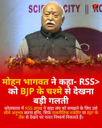 राष्ट्रीय स्वयंसेवक संघ के प्रमुख मोहन भागवत ने स्पष्ट कहा है कि संघ को भाजपा के चश्मे से देखना गलत है। उन्होंने कहा कि संघ किसी राजनीतिक दल का अंग नहीं है और उसका उद्देश्य समाज को जोड़ना तथा राष्ट्र निर्माण में योगदान देना है। कोलकाता में आयोजित एक कार्यक्रम को संबोधित करते हुए भागवत ने कहा कि संघ को केवल एक सक्रिय संगठन या राजनीतिक इकाई के रूप में देखना उचित नहीं है। संघ समाज के हर वर्ग के लिए काम करता है और उसका लक्ष्य सांस्कृतिक व सामाजिक जागरण है। उन्होंने कहा कि संघ किसी के खिलाफ नहीं है और न ही किसी राजनीतिक दल का समर्थन या विरोध करता है।