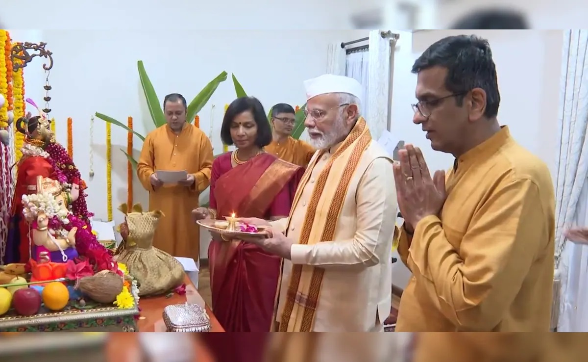 प्रधानमंत्री नरेंद्र मोदी ने देश के प्रधान न्यायाधीश जस्टिस डीवाई चंद्रचूड़ के यहां जाकर भगवान गणेश की आरती की। इस पर भारी विवाद खड़ा हो गया है। कुछ लोग इसे न्यायपालिका की पवित्रता पर दाग की तरह देख रहे हैं तो एक वर्ग विरोधियों की बौखलाहट देख खुशी का इजहार कर रहा है। जस्टिस चंद्रचूड़ देश के सर्वोच्च न्यायालय के चीफ जस्टिस (सीजेआई) हैं। यह न्यायपालिका का सर्वोच्च पद है। दूसरी तरफ प्रधानमंत्री कार्यपालिका के शीर्ष पदों में से एक पर विराजमान हैं। ऐसे में जब सीजेआई का न्योता पीएम को जाएगा तो उन्हें ठुकराने की कम ही गुंजाइश रहती है। संभवतः इसी वजह से प्रधानमंत्री ने सीजेआई के यहां जाना वाजिब समझा और गए भी। प्रधानमंत्री ने सोशल मीडिया के जरिए खुद इसकी जानकारी भी दी। उन्होंने एक एक्स पोस्ट में गणेश आरती की तस्वीर साझा की। पीएम ने लिखा, ‘सीजेआई जस्टिस डीवाई चंद्रूचूड़ जी के घर पर गणेश पूजा में शामिल हुआ। भगवान श्री गणेश हम सभी को सुख, समृद्धि और उत्तम स्वास्थ्य प्रदान करें।’