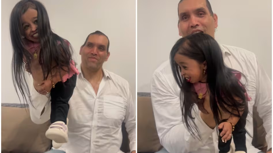 द ग्रेट खली ने दुनिया की सबसे छोटे कद वाली महिला ज्योति आम्गे के साथ एक वीडियो शेयर किया है. वीडियो में दोनों काफी फन करते नजर आ रहे हैं. खली एक हाथ से ही ज्योति को पूरी तरह उठा लेते हैं और फिर हवा में घुमाते हैं. बाद में वो उन्हें अपने पैर पर बिठा लेते हैं. इस दौरान ज्योति भी खूब हंसती हुई दिखती हैं. ये वीडियो जहां कुछ लोगों को बहुत पसंद आ रहा है, तो वहीं कुछ लोग इसे देखकर खली की आलोचना कर रहे हैं. वीडियो को खली ने अपने इंस्टाग्राम अकाउंट पर एक दिन पहले पोस्ट किया था.