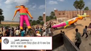 कमेंट सेक्शन में लोग रावण को गिरता देख जमकर फनी कमेंट कर रहे हैं। एक शख्स ने लिखा- ये क्या, रावण को जलाने से पहले ही गिरा कर मार दिया। दूसरे ने कहा कि लगता है इस बार रावण वानर सेना पर भारी पड़ गया। तीसरे ने कहा कि अगर आज रावण जिंदा होता तो ये सब देख कर मर जाता। चौथे ने लिखा कि लगता है रावण को नींद आ रही है। कमेंट सेक्शन ऐसी ही मजेदार प्रतिक्रियाओं से भरा हुआ है।