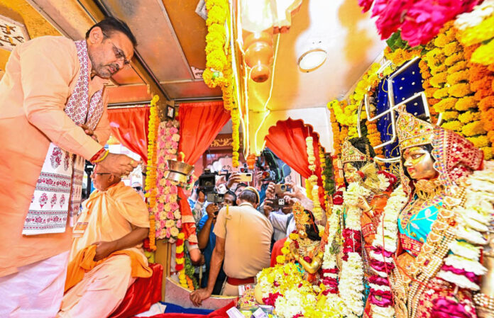 उनके नेतृत्व में देशभर में आस्था के केंद्रों के विकास को नई गति मिली है। काशी विश्वनाथ धाम परिसर, उज्जैन में महाकाल महालोक परिसर और सोमनाथ मंदिर के जीर्णोद्धार जैसे कार्य देश की सांस्कृतिक धरोहर को सशक्त बना रहे हैं। मुख्यमंत्री ने हवाई अड्डे पर मीडिया से बातचीत करते हुए कहा कि नवरात्रि पर्व का सनातन संस्कृति में विशेष आध्यात्मिक महत्व है। रामनवमी के पावन अवसर पर मर्यादा पुरुषोत्तम भगवान श्रीराम के आदर्शों से प्रेरणा लेने का संदेश मिलता है। उन्होंने प्रदेशवासियों को रामनवमी पर्व की शुभकामनाएं भी दीं। इस अवसर पर केंद्रीय मंत्री गजेन्द्र सिंह शेखावत, राज्यसभा सांसद राजेन्द्र गहलोत, विधायक देवेन्द्र जोशी, बाबूसिंह राठौड़ और पब्बाराम विश्नोई, विश्व हिन्दू परिषद के केंद्रीय अधिकारी स्वप्न मुखर्जी, प्रांत अध्यक्ष डॉ. राम गोयल, समिति अध्यक्ष अर्जुन सिंह उचियारड़ा सहित अन्य जनप्रतिनिधि और बड़ी संख्या में श्रद्धालु उपस्थित रहे।