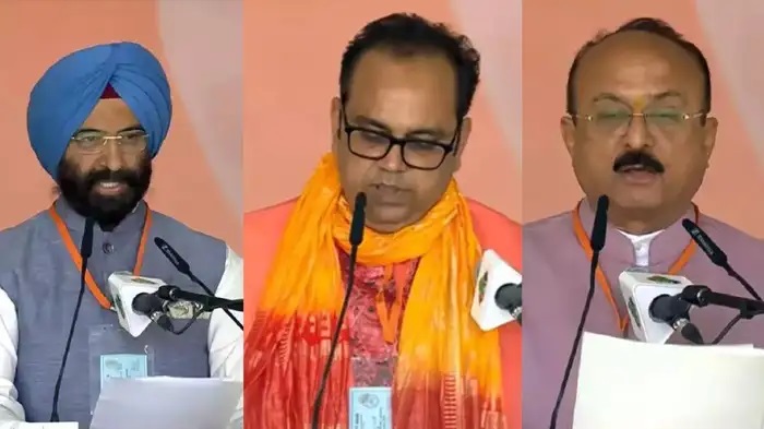 दिल्ली की नई मुख्यमंत्री रेखा गुप्ता ने गुरुवार को मुख्यमंत्री पद की शपथ ली। इनके साथ 6 विधायकों ने भी मंत्री पद की शपथ ली। इन मंत्रियों में प्रवेश वर्मा, आशीष सूद, मनजिंदर सिंह सिरसा, रविंद्र इंद्राज सिंह, कपिल मिश्रा और पंकज कुमार सिंह शामिल हैं। दिल्ली के उपराज्यपाल वीके सक्सेना ने सबसे पहले मुख्यमंत्री रेखा गुप्ता को शपथ दिलवाई इसके बाद प्रवेश वर्मा, आशीष सूद, मनजिंदर सिंह सिरसा, कपिल मिश्रा, पंकज कुमार सिंह और आखिर में रविंद्र इंद्राज सिंह ने शपथ ली।