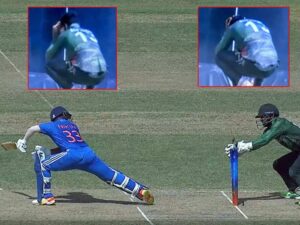 दरअसल, भारतीय पारी का 14वां ओवर रकिबुल हसन करने आए। ओवर की तीसरी गेंद पर भारतीय बल्लेबाज निकिन जोस बड़ हिट लगाना चाहते थे, लेकिन अचानक उन्होंने डिफेंसिव होने का फैसला किया। इस दौरान शॉट चूक गए। जब वह समझ पाते गेंद विकेटकीपर तक पहुंच गई थी। बांग्लादेशी विकेटकीपर ने तत्काल गेंद स्टंप में भिड़ा दिए। अब फील्ड अंपायर को कुछ गफलत लगी तो उन्होंने थर्ड अंपायर को रेफर कर दिया।
