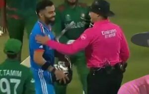 यहां अगर अंपायर गेंद को वाइड करार देते तो भारत को जीत के लिए एक रन की ही जरूरत होती। हो सकता है कि अगली गेंद भी जानबूझकर वाइड डाली जाती, लेकिन यहां नसुम की भी तारीफ करनी होगी कि उन्होंने लीगल डिलीवरी की। कोहली को शतक पूरा करने का मौका मिल गया। सोशल मीडिया पर वाइड पर अंपायर के फैसले को लेकर कोहराम मचा हुआ है।