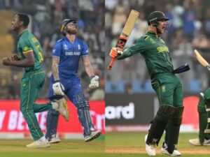 इंग्लैंड और साउथ अफ्रीकी वर्ल्ड कप 2023 में उलटफेर का शिकार होकर मुंबई पहुंचीं। वानखेड़े स्टेडियम पर दोनों की नजरें वापसी करने पर थीं। गेंद से इंग्लैंड ने अच्छी शुरुआत की लेकिन फिर साउथ अफ्रीका की पलटवार कर दिया। हेनरिच क्लासेन के तूफानी शतक और मार्को यानसेन की अर्धशतक ने साउथ अफ्रीका को 399 रनों तक पहुंचा दिया। इंग्लैंड की पारी सिर्फ 170 रनों पर सिमट गई। इस मैच को साउथ अफ्रीका ने 229 रनों से जीता। मुकाबले में कई बड़े बड़े रिकॉर्ड बने, हम आपको उनके बारे में बताने जा रहे हैं।