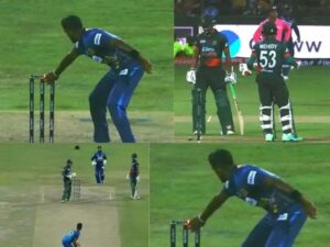 एशिया कप 2023 के दूसरे मैच में बांग्लादेश और श्रीलंका के बीच टक्कर हो रही है। मैच में बांग्लादेश की टीम ने पहले बैटिंग करते हुए 42.4 ओवर में 164 रन ही बना सकी। बांग्लादेश के लिए सबसे अधिक नजमुल हसन शंटो ने 89 रनों की पारी खेली। हालांकि वह अपने शतक चूक गए। एक तरफ जहां शंटो ने श्रीलंकाई गेंदबाजों का डटकर सामना किया था जो दूसरे छोड़ पर बांग्लादेशी बल्लेबाज संघर्ष करते हुए दिखे।