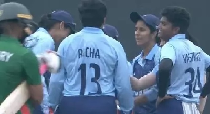 पहले तीन ओवर में तीन विकेट लेकर पूजा ने भारत का शिकंजा कस दिया। टिटास ने उनका बखूबी साथ देते हुए सोरना अख्तर को बोल्ड किया। बीच के ओवरों में स्पिनरों ने बल्लेबाजों को खुलकर खेलने नहीं दिया। कुछ बल्लेबाजों के रनआउट होने से बांग्लादेश की मुश्किलें और बढ गई।