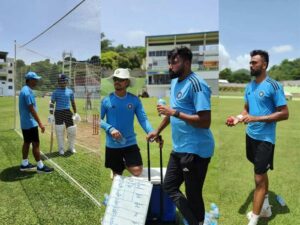 वेस्टइंडीज में टेस्ट के लिए भारत की टीम: रोहित शर्मा (कप्तान), शुभमन गिल, रुतुराज गायकवाड़, विराट कोहली, यशस्वी जयसवाल, अजिंक्य रहाणे (उप-कप्तान), केएस भरत (विकेटकीपर), ईशान किशन (विकेटकीपर), रविचंद्रन अश्विन, रविंद्र जड़ेजा, शार्दुल ठाकुर, अक्षर पटेल, मो. सिराज, मुकेश कुमार, जयदेव उनादकट, नवदीप सैनी।