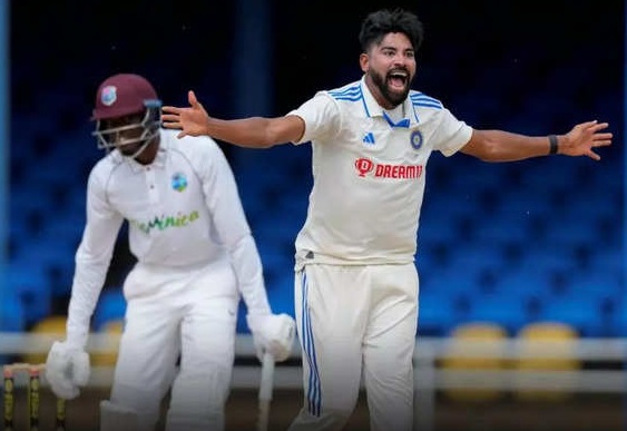 चौथी दिन भारतीय टीम के लिए दिन की शुरुआत शानदार रही। तेज गेंदबाज मुकेश कुमार ने दिन के पहले ही ओवर में एलिक एथानाज को चलता कर दिया। अगले ओवर में मोहम्मद सिराज तीसरे दिन नॉट आउट लौटे जेसन होल्डर को अपनी रफ्तार में फंसाया। सिराज ने यहां से लगातार दबाव बनाया और चौथे दिन मेजबान टीम को 7.4 ओवर में महज 26 रन जोड़कर समेट दिया। उन्होंने लगातार दो गेंदों पर विकेट लेकर विंडीज की पारी का अंत किया।