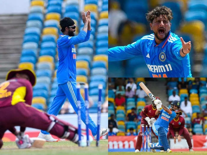 बाएं हाथ के चाइनामैन स्पिनर कुलदीप ने सिर्फ छह रन देकर चार जबकि बाएं हाथ के जडेजा ने 37 रन देकर तीन विकेट चटकाए। शार्दुल ठाकुर, हार्दिक पंड्या और मुकेश कुमार ने भी एक-एक विकेट चटकाया। कप्तान शाई होप 43 रन बनाकर वेस्टइंडीज के शीर्ष स्कोरर रहे।