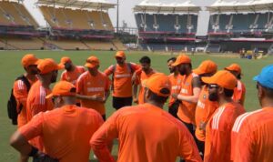 वनडे वर्ल्ड कप 2023 का आगाज हो चुका है, लेकिन भारतीय टीम को अभी भी अपने पहले मैच का इंतजार है। उसे टूर्नामेंट में अपना पहला मुकाबला ऑस्टेलिया के खिलाफ खेलना है। यह मैच चेन्नई के एमए चिदंबरम में 8 अक्टूबर को होना है, लेकिन उससे पहले टीम इंडिया मैदान पर खूब पसीना बहा रही है और किसी भी मामले में कोई कमी नहीं छोड़ना चाहती है। इंडिया हालांकि इस दौरान अपने पारंपरिक नीली जर्सी के इतर भगवा जर्सी में नजर आई। चेन्नई में पारा भले ही 33-36 के आसपास था, लेकिन ह्यूमिडिटी भयानक थी।