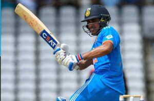 ब्रायन लारा स्टेडियम में वेस्टइंडीज के खिलाफ तीसरे और आखिरी मैच में शुभमन गिल अपने छठे शतक से चूक गए। अभी तक वेस्टइंडीज के इस पूरे दौरे पर बुरे फॉर्म से जूझ रहे शुभमन ने 92 गेंद में 85 रन बनाए। एक खराब बॉल पर पुल करने की कोशिश में शॉर्ट मिड विकेट पर स्पिनर मोती ने कारियाह के हाथों कैच आउट करवाया। शुरुआती 10 ओवर्स में शुभमन ने कई दर्शनीय शॉट्स लगाए। इस पारी में शुभमन गिल के बल्ले से कुल 11 चौके निकले। शुभमन गिल ने इस दौरान ईशान किशन के साथ पहले विकेट के लिए रिकॉर्ड 143 रन की ओपनिंग पार्टनरशिप की।