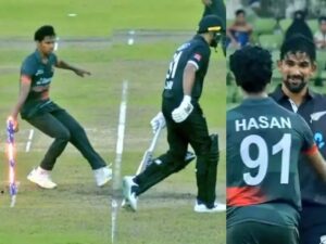 दरअसल मैच के 46वें ओवर में बांग्लादेश के गेंदबाज हसन महमूद ने स्ट्राइक एंड पर बल्लेबाजी कर रहे लॉकी फर्ग्यूसन को गेंद डालने के लिए अपना रन अप लिया। वहीं दूसरी छोर पर ईश सोढ़ी रन लेने के लिए बॉल हाथ से निकलने से पहले अपना क्रीज छोड़ दिए। हसन महमूद पूरी तरह से मुस्तैद थे और उन्होंने ईश सोढ़ी को रन आउट (मांकडिंग) कर दिया।