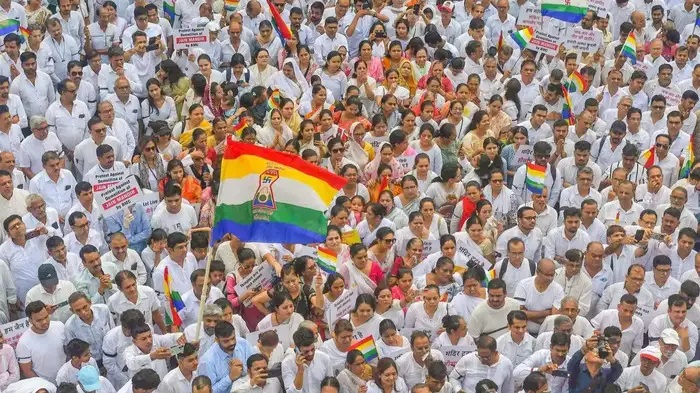 शनिवार को वार्ड कार्यालय तक एक विरोध मार्च निकाला गया। महाराष्ट्र गौशाला संघ के परेश शाह ने दावा किया कि धार्मिक नेताओं और महाराष्ट्र के मंत्री मंगल प्रसाद लोढ़ा, स्थानीय भाजपा विधायक पराग अलवानी और कुछ अन्य राजनीतिक नेताओं सहित 20,000 से अधिक लोगों ने मार्च में भाग लिया। उन्होंने बताया कि प्रदर्शनकारियों के एक प्रतिनिधिमंडल ने मांगों का ज्ञापन सौंपा और घाडगे के साथ दो घंटे तक बैठक की।