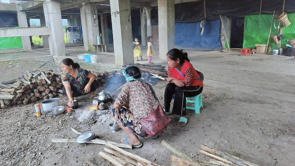 इस चेक पॉइंट को पार करके चुरा चांदपुर शहर में प्रवेश से पहले सड़क पर रिलीफ कैंप दिखाई देता है. यह कोई सरकारी केंद्र नहीं है, बल्कि एक निर्माणाधीन इमारत में कुछ लोगों ने शरण ले रखी है. लगभग 137 कुकी जिसमें बच्चे महिलाएं बड़े युवा और बुजुर्ग शामिल हैं. यह तमाम कुकी मणिपुर के थोबल जिले के रहने वाले हैं और जब हिंसा में उनके घर जलाए गए तो इन लोगों ने भाग कर जान बचाई और अब चुरा चांदपुर जिले में आकर पनाह ले ली. खाने के लिए दो वक्त का राशन स्थानीय एनजीओ और चर्च की संस्था से मिल जाता है. कहीं सब्जियों के पत्ते उबल रहे हैं, तो कहीं चावल पक रहा है.