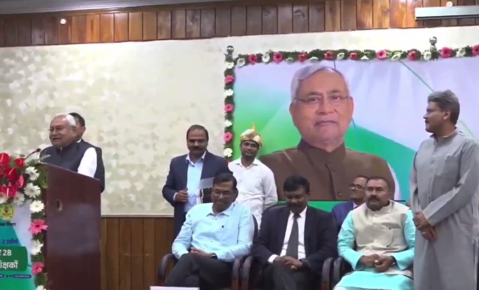 बिहार के पटना में एक कार्यक्रम के दौरान, मुख्यमंत्री नीतीश कुमार ने नियोजित शिक्षकों को विशिष्ट शिक्षक के रूप में नियुक्ति पत्र दिए। साथ ही, उन्होंने शिक्षा मंत्री सुनील कुमार को सबके सामने मंच पर खड़ा कर दिया, जिसके कारण महिला शिक्षकों के साथ कार्यक्रम में मौजूद सभी लोगों के चेहरे पर मुस्कान आ गई।