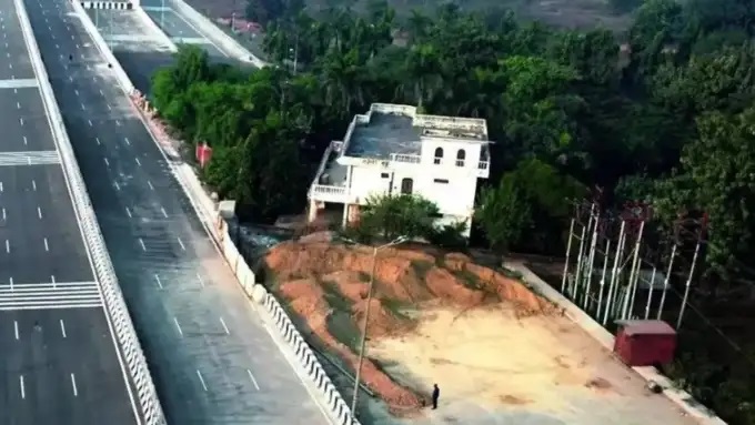 रास्ते में आ रहे एक घर के कारण रुका है दिल्ली-देहरादून एक्सप्रेसवे, इंटरनेट पर वायरल हुई मकान की तस्वीर