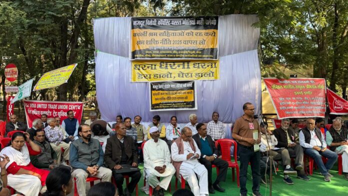 इंदौर में केंद्रीय ट्रेड यूनियनों का एकदिवसीय धरना प्रदर्शन