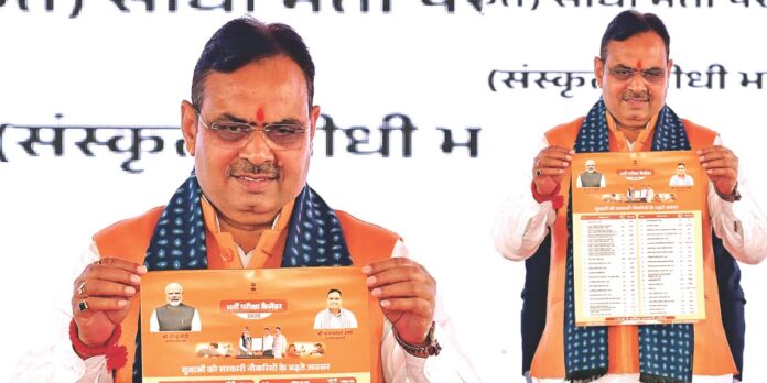 भर्ती परीक्षाएं समय पर और निष्पक्ष होंगी, ताकि युवाओं को उनके परिश्रम का पूरा फल मिल सके। उन्होंने यह भी बताया कि भर्ती कैलेंडर के साथ-साथ नई युवा नीति और रोजगार नीति भी लागू की गई है, जिससे सरकारी नौकरी के साथ-साथ स्वरोजगार और उद्यमिता में रुचि रखने वाले युवा भी लाभान्वित होंगे। मुख्यमंत्री ने कहा कि राजस्थान में हर क्षेत्र में विकास की अपार संभावनाएं हैं। प्रधानमंत्री नरेंद्र मोदी के ‘वोकल फॉर लोकल’ और ‘स्वदेशी’ के आह्वान को आत्मसात करते हुए युवाओं को रोजगार प्रदाता बनने का आह्वान किया। उन्होंने बताया कि निजी क्षेत्र में रोजगार बढ़ाने के लिए सरकार निरंतर प्रयासरत है और अब तक निजी क्षेत्र में दो लाख से अधिक रोजगार अवसर सृजित किए जा चुके हैं।