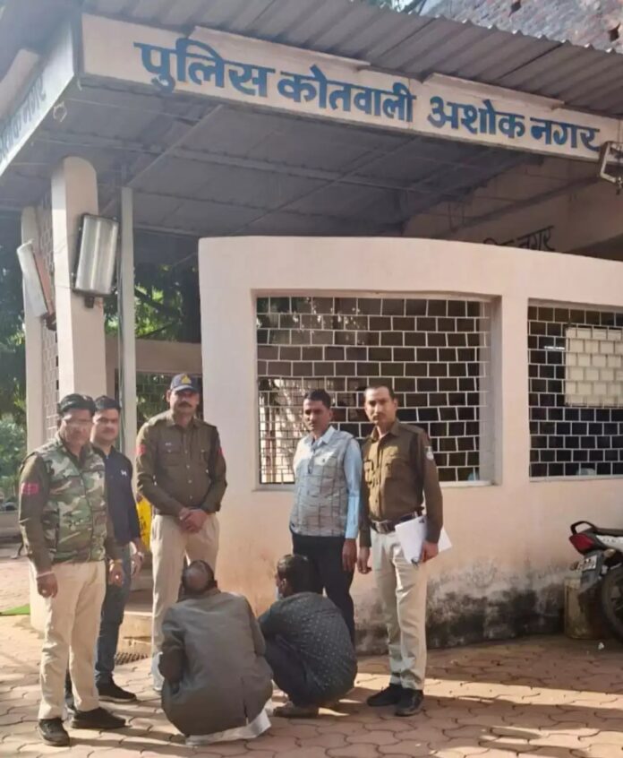 अशोकनगर। करीब तीन माह पहले सिटी कोतवाली क्षेत्र के अंतर्गत आने वाले मोती मोहल्ले स्थित राम जानकी मंदिर में भगवान हनुमानजी की मूर्ति पर लगे सोने के मुकुट की चोरी का मामला सामने आया था। लंबे समय तक जांच के बाद पुलिस ने इस चोरी का खुलासा करते हुए आरोपी सहित मुकुट खरीदने वाले व्यक्ति को भी गिरफ्तार कर लिया है।