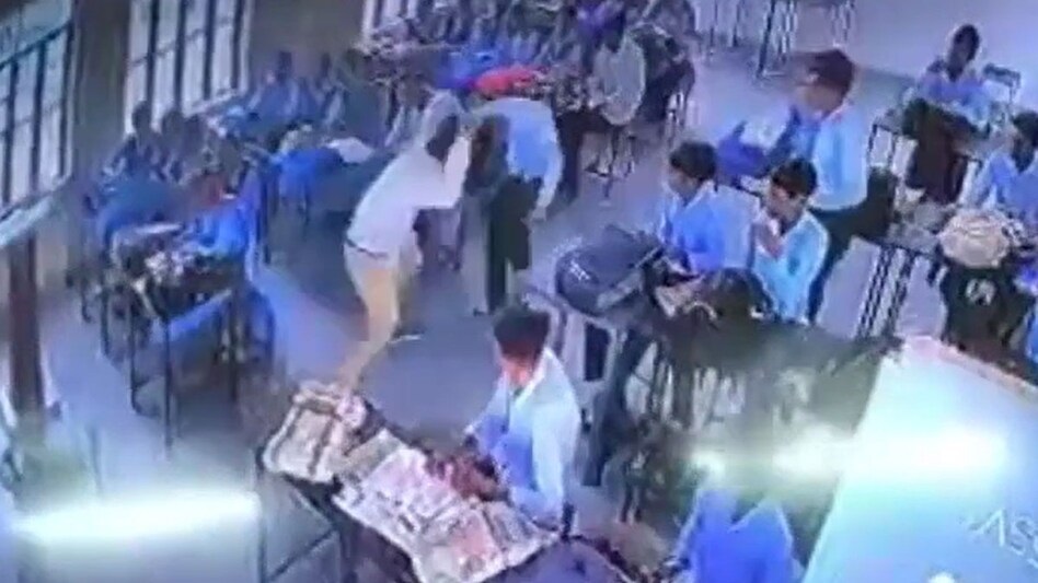 टीचर ने क्लासरूम में छात्र को डंडे से पीटा