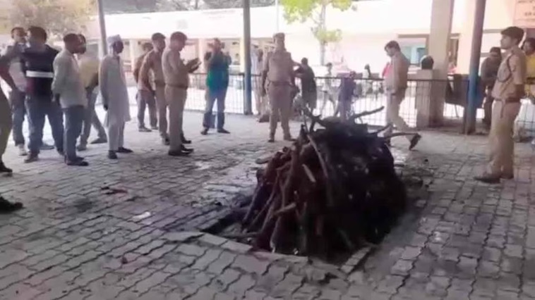UP: पति की मौत में हत्या का शक, पत्नी ने बुलाई पुलिस, जलती चिता को बुझाकर शव कब्जे में लिया