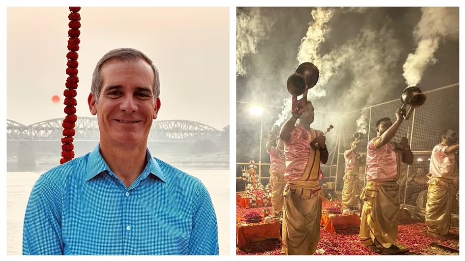 अमेरिकी राजदूत एरिक गार्सेटी बुधवार को वाराणसी घाट पहुंचे और गंगा आरती देखी. उन्होंने गंगा आरती देखने के बाद वाराणसी की खूब तारीफ की. इसे लेकर उन्होंने सोशल मीडिया पर अपने अनुभव शेयर किए. राजदूत ने एक्स पर कई पोस्ट में भारत के आध्यात्मिक शहर की अपनी यात्रा की तस्वीरें साझा कीं.