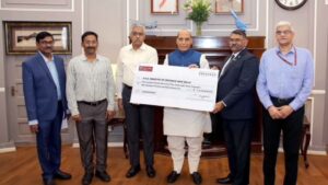 देश के रक्षा मंत्री राजनाथ सिंह को एक सरकारी कंपनी ने मंगलवार को 121 करोड़ रुपये का चेक सौंपा. भारत डायनैमिक्स लिमिटेड (BDL) के अधिकारियों ने इतनी बड़ी रकम का चेक सरकार को डिविडेंड के रूप में दिया है. इससे पहले सरकारी बैंकों ने वित्त मंत्री निर्मला सीतारमण को हजारों करोड़ रुपये के डिविडेंड चेक सौंपे थे. इसकी जानकारी रक्षा मंत्री कार्यालय की ओर से सोशल मीडिया पर शेयर की है.