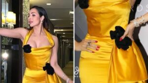 बॉलीवुड की पार्टी हो या फिर शादी, मलाइका हर इवेंट में अपने लुक से खलबली मचा देती हैं। इस अवॉर्ड फंक्शन में भी ऐसा ही हुआ। यहां ये हसीना येलो कलर के साटन के गाउन में पहुंची थीं। जिसे गौरी और नैनिका ने डिजाइन किया था। इस मरमेड स्टाइल बॉडी हगिंग गाउन में मलाइका अपना कर्वी फिगर फ्लॉन्ट कर रही थीं। इस आउटफिट की कीमत 2,40,000 रुपये है।