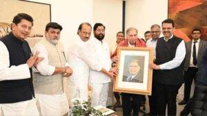 देश के दिग्गज उद्योगपति और टाटा संस के पूर्व चेयरमैन रतन टाटा को महाराष्ट्र सरकार ने ‘उद्योग रत्न’ पुरस्कार से सम्मानित किया है. महाराष्ट्र सरकार ने पहला ‘उद्योग रत्न’ पुरस्कार 85 वर्षीय रतन टाटा को दक्षिण मुंबई के कोलाबा स्थित उनके आवास पर मुख्यमंत्री एकनाथ शिंदे, उपमुख्यमंत्री देवेंद्र फडणवीस और अजीत पवार ने प्रदान किया. इस सम्मान में महाराष्ट्र औद्योगिक विकास निगम (MIDC) की ओर से एक शॉल, एक प्रशस्ति पत्र और एक स्मृति चिन्ह शामिल था.