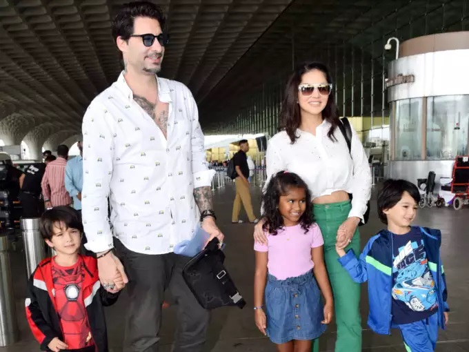 सनी लियोनी बीटाउन की उन एक्ट्रेसेस में से एक हैं, जो फैशन पर जबरदस्त पकड़ रखती हैं। इसका सबूत उनके एयरपोर्ट से लेकर रेड कार्पेट लुक्स में साफ नजर आता है। हालांकि, अदाकारा और उनके बच्चों के कपड़ों में काफी अंतर दिखाई देता है, जिसे तस्वीरें भी साफ बयां करती हैं। हालिया तस्वीरों की बात करें,तो सनी लियोनी को अपने पति और तीनों बच्चों के साथ मुंबई एयरपोर्ट पर देखा गया। इस दौरान सनी लियोनी ग्रीन कलर की जींस और वाइट क्रॉप्ड टॉप पहनी थीं। उन्होंने अपने स्टाइलिश लुक को शेड्स के साथ राउंड ऑफ किया था।