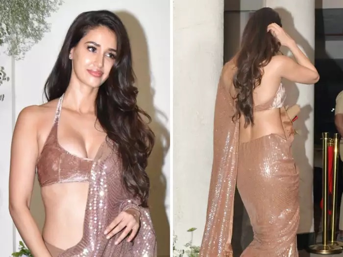 मनीष मल्होत्रा की पार्टी में दिशा उनकी ही डिजाइन की साड़ी पहनकर पहुंची थीं। इस पर डिजाइनर का स्टेटमेंट सीक्वन वर्क देखा जा सकता था। ओवरऑल वर्क को वन-टोन का रखा गया था। कोको कलर की साड़ी पर मैचिंग के सितारे काफी खूबसूरत लग रहे थे।