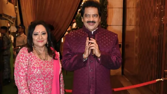 HomeUncategorizedदूसरी पत्नी संग उदित नारायण पहुंचे अंबानी के यहां, गुलाबी और मरून...